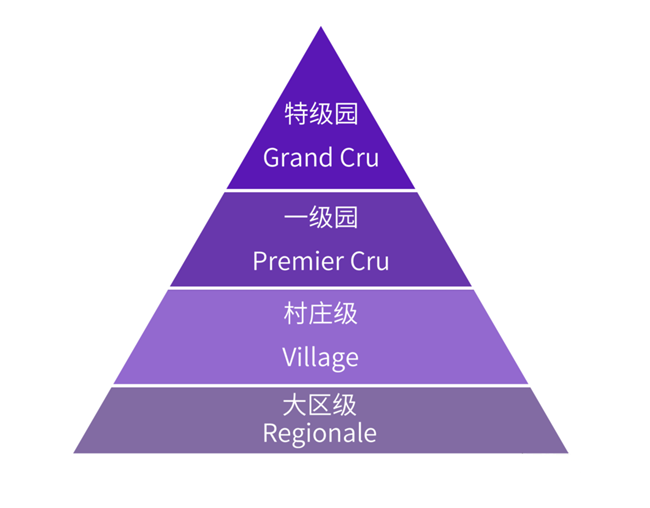 波爾多以酒莊為單位,將酒莊劃分為不同等級,誕生了1855分級和圣埃美隆(Saint-Emilion)分級等分級制度。與波爾多不同,勃艮第更注重風土,以風土為依據,將不同的葡萄園劃分為特級園(Grand Cru)、一級園(Premier Cru)、村莊級(Village)和大區級四個等級。