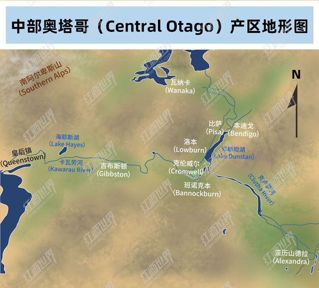 這是中部奧塔哥最南端的產區,也是讓·德西雷·費羅種下首批葡萄藤的地方。亞力山德拉氣候干燥,夏季和冬季都容易出現極端天氣,明顯的晝夜溫差一直持續到采收季節,成就具有鮮明葡萄品種特點、芳香四溢、結構精良的葡萄酒。