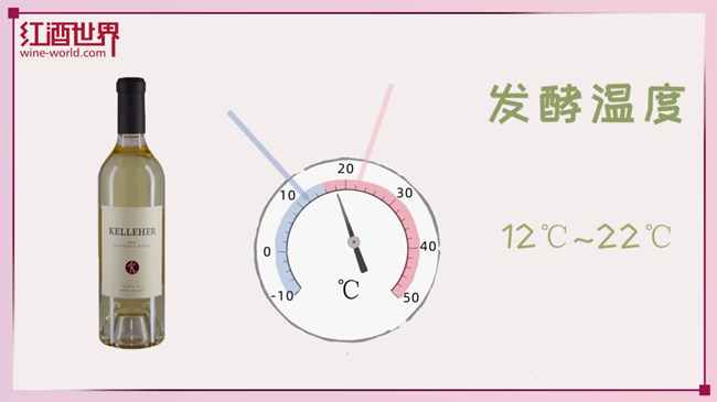 白葡萄酒的理想發(fā)酵溫度為12°C至22°C之間,因為較低的溫度可以減緩葡萄酒的發(fā)酵進程,有利于保留葡萄品種的風(fēng)味特性,盡可能避免芳香物質(zhì)的流失。在較高的溫度下發(fā)酵可以使葡萄酒產(chǎn)生一些更復(fù)雜的芳香,但有可能會失去果味;在過低的溫度下發(fā)酵會給葡萄酒帶來水果硬糖的味道,也不利于展現(xiàn)葡萄品種的果味。