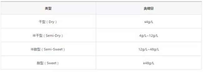 葡萄酒據(jù)含糖量分類標(biāo)準(zhǔn)圖