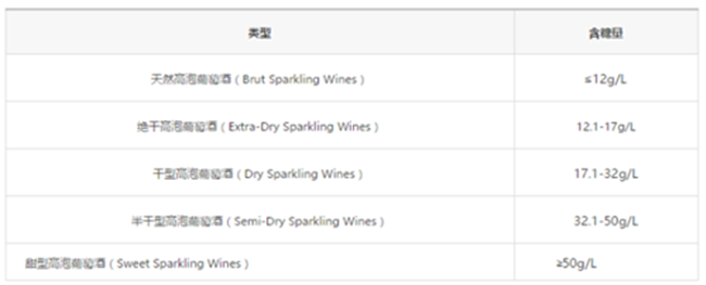 起泡酒據(jù)含糖量分類標(biāo)準(zhǔn)圖