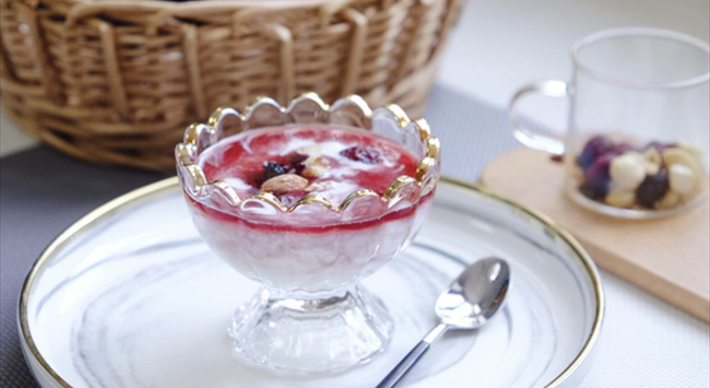 為了令冰酒的口感更為平衡,飲用前,一般需要將其充分冰鎮(zhèn)至6℃-8℃。因其口感甜美,冰酒非常適合與甜品糕點(diǎn)搭配飲用,可以嘗試搭配軟奶酪,如布里干酪和淡味山羊奶酪,或者簡單的香草甜點(diǎn),如酸奶意式奶凍、酸奶油磅蛋糕和冰淇淋。搭配食物的甜度也有所講究,最好不要高于冰酒。