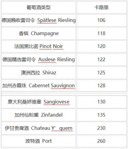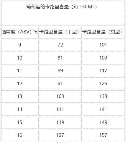 葡萄酒的熱量與其所含的酒精度息息相關(參考下表),因此不能簡單地用白葡萄酒、紅葡萄酒來做比較。