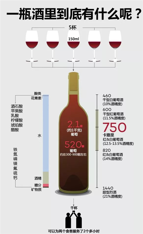 2、一瓶葡萄酒大概有750卡的熱量。(根據(jù)不同品種在460-1440卡浮動)