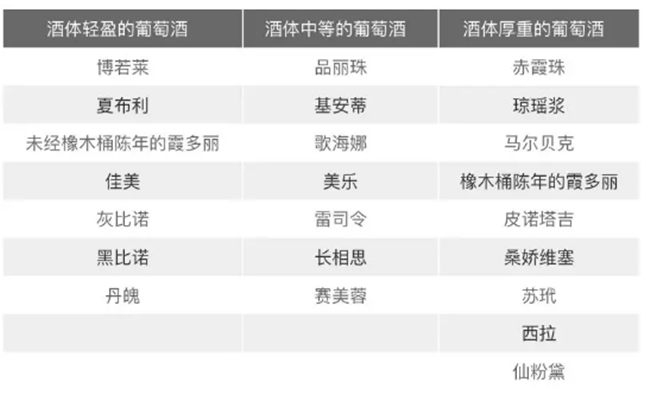 那么,究竟哪些葡萄酒屬于酒體輕盈的葡萄酒,而哪些又屬于酒體厚重的葡萄酒呢?