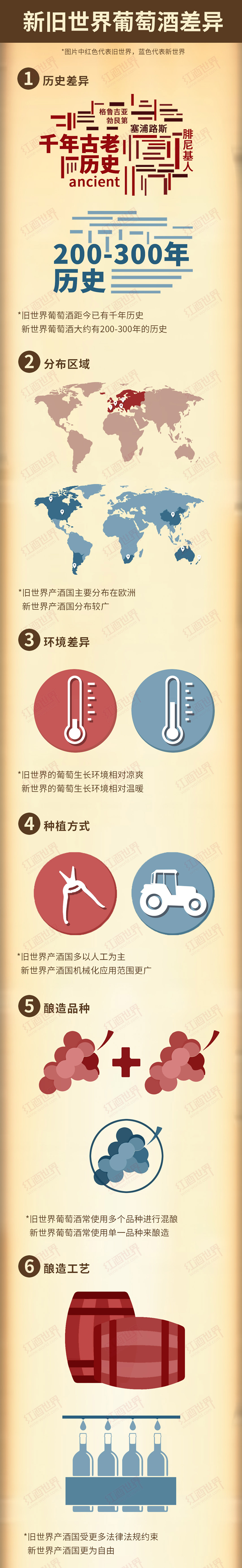 新舊世界葡萄酒各有千秋,關(guān)于這兩個(gè)“派別”的討論從未停止。到底是新世界的小鮮肉讓人歡喜?還是舊世界的老紳士更令人著迷?實(shí)際上,正是新舊世界葡萄酒的差異造就了多姿繽紛的葡萄酒天地,本文將通過一張圖來幫助大家探尋新舊世界的不同。
