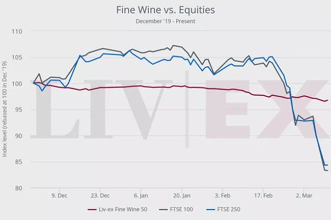 3月14日,liv-ex發布了一周葡萄酒交易市場報告,報告稱在全球疫情蔓延情況下,上周全球股市遭受嚴重打擊,但優質葡萄酒卻一直相對穩定。