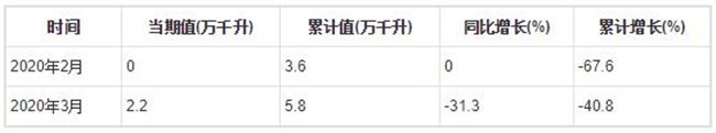 根據中國報告大廳對2020年1-3月全國葡萄酒產量進行監測統計顯示:2020年3月全國葡萄酒產量2.2萬千升,同比下降31.3%,2020年1-3月全國葡萄酒產量為5.8萬千升,累計下降40.8%。