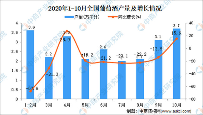 2020年1-10月全國(guó)葡萄酒產(chǎn)量統(tǒng)計(jì)