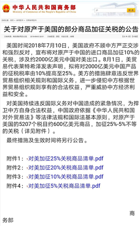 雖然今日中國對自美進口產品加征25%的關稅的產品名單里并不涉及葡萄酒,但是8月3日,商務部發布的關于對原產于美國的部分商品加征關稅的公告中,卻將葡萄酒列入了“對美加征25%關稅商品清單”,最終措施及生效時間將另行公告。