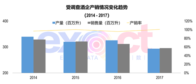 自2014年以來,國產葡萄酒企產銷率維持在95%以上,基本能實現產銷平衡。2017年葡萄酒的產量和銷量雙雙降至近幾年來的最低值,但產銷率為100.73%,為近幾年最佳平衡點。
