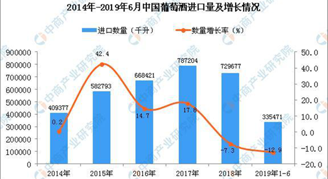 • 2019年1-6月中國葡萄酒進口量同比下降12.9%