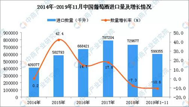 而根據前瞻產業研究院的數據顯示,2019年國內瓶裝葡萄酒進口企業和2018年相比,也至少減少了40%。