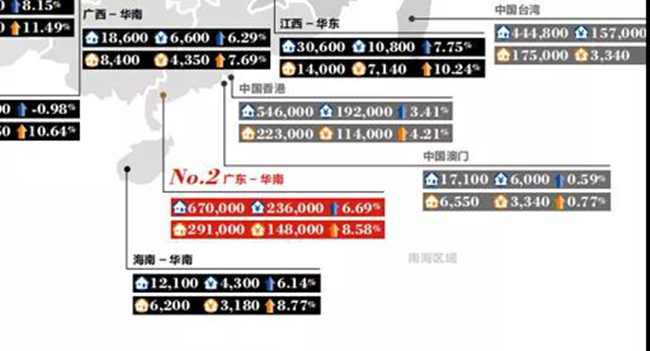 CBNData顯示,廣東是2018和2019年度酒水消費金額占比最高的省份,而廣東省坐擁深圳和廣州兩個一線城市,表現十分搶眼。 回頭看廣東省600萬及1000萬資產家庭數量,結論顯而易見了。