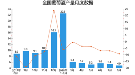 據研究機構發布的2018年1-8月全國葡萄酒產量統計報告顯示,國產葡萄酒總產量已連續4年下跌,較產量高峰年減產近三成,而葡萄酒進口量逐年增長,國內市場容量遠未到峰值,對此專家有不同意見。 國產葡萄酒總產量已連續4年下跌,較產量高峰年減產近三成 國家統...