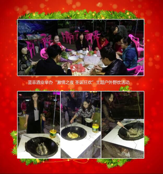 12月25日,適逢圣誕節來臨之際,公司組織藍菲酒業全體員工開展“激情之夜 圣誕狂歡”為主題的農家樂戶外野炊活動,讓全體員工在公司共度一個難忘的圣誕節。