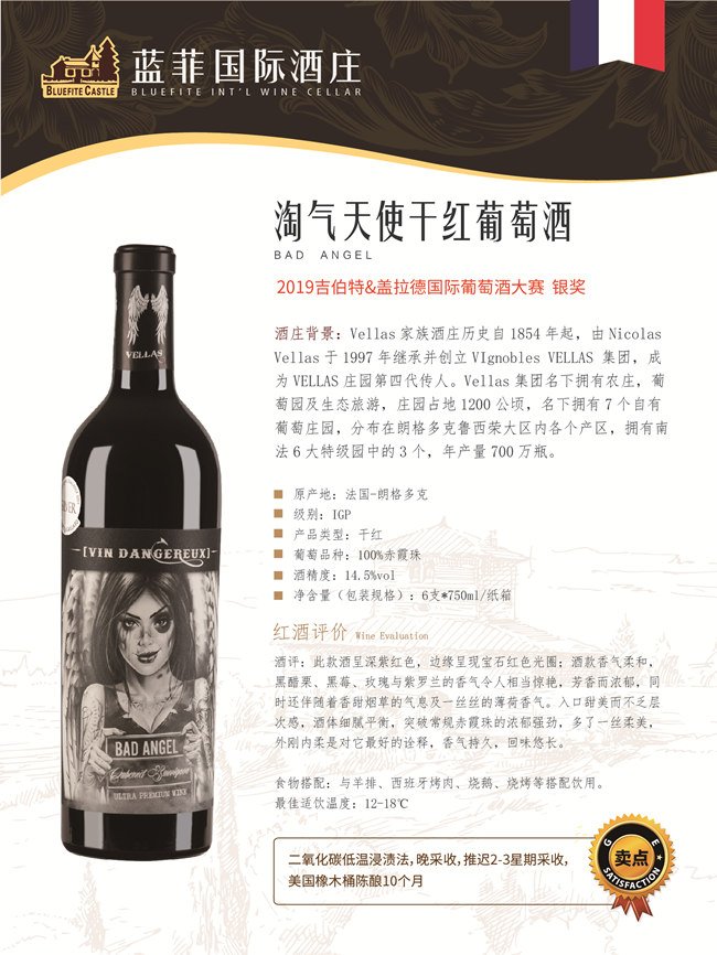 一般的朗格多克葡萄酒大都平易近人,簡單易飲,干凈純粹,像校園學生般單純青澀,沒有成熟男女的深沉與知性。但是,隨著近年來朗格多克葡萄酒品質的提升,也不乏復雜、平衡且有集中度和深度的紅葡萄酒出現(xiàn),藍菲酒業(yè)戰(zhàn)略合作伙伴Vellas酒莊出品的三款葡萄酒在2019吉伯特&蓋拉德國際葡萄酒大賽一路披荊斬刺,酒品及風味令人驚艷:嘉仕頓干紅葡萄酒、快樂天使干紅葡萄酒榮獲2019吉伯特&蓋拉德國際葡萄酒大賽金獎,而淘氣天使干紅葡萄酒榮獲2019吉伯特&蓋拉德國際葡萄酒大賽銀獎!